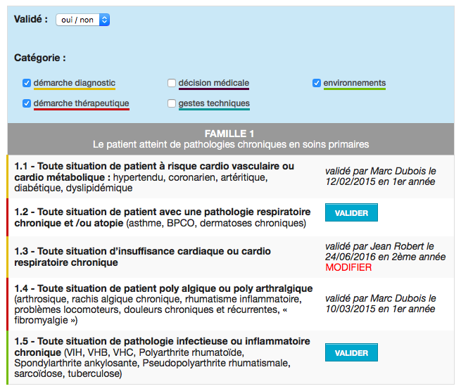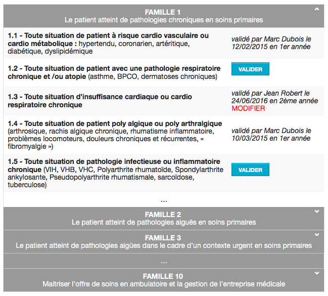 Les compétences s'affichent par famille et l'étudiant voit d'un coup d'œil quelles compétences ont été validées. (3)