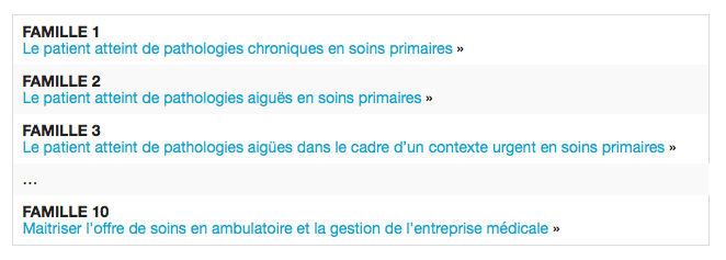On peut afficher la liste des familles sur la première page et demander à l'utilisateur de cliquer sur une famille afin d'aller sur la page qui affiche les compétences de cette famille.