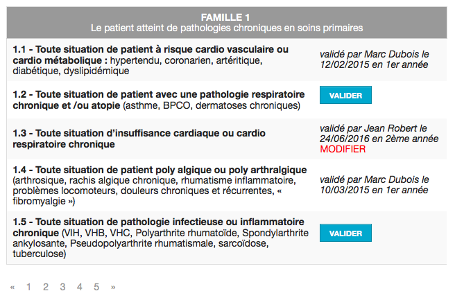 On peut afficher une liste des compétences avec pagination. La page n'est pas trop chargée, mais l'utilisateur doit traverser plusieurs pages à la recherche de la compétence à valider.